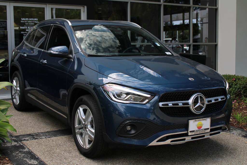 CARFAX One-Owner. Clean CARFAX. Certified. Denim Blue Metallic 2023 Mercedes-Benz GLA 250 4MATIC® 4MATIC® 8 Speed Dual Clutch 2.0L I4 Turbocharged. Mercedes-Benz Certified Pre-Owned with added 1 year and/or unlimited miles expires 11/30/2028. 10.25 Digital Instrument Cluster, 10.25 Media Display w/Touchscreen, 115V Outlet, 64-Color Interior Ambient Lighting, Alloy wheels, Augmented Video for Navigation, Auto Dimming Rearview & Driver's Side Mirrors, Black Rubber All-Season Front & Rear Floor Mats, First Aid Kit, Garage Door Opener, Hands-Free Access, Heated Front Seats, Heated Steering Wheel, KEYLESS GO®, LED Logo Projector, MB Navigation, Multimedia Package, Non-Flattened Steering Wheel, Power Folding Mirrors, Premium Package, SiriusXM Radio, Traffic Sign Assist, Wheel Locking Bolts, Wheels: 18 Twin 5-Spoke.