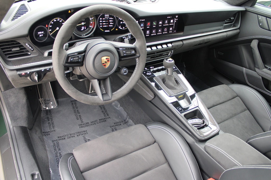 Clean CARFAX. Certified. Brewster Green Paint to Sample 2022 Porsche 911 GT3 RWD 7-Speed Porsche Doppelkupplung (PDK) 4.0L H6 DOHC 24V LEV3-LEV160 502hp. Porsche Approved Certified Pre-Owned with added 2 year and/or unlimited miles expires 09/07/2028. 18-Way Adaptive Sport Seats Plus, 23.7 Gal. Extended Range Fuel Tank, Auto-Dimming Mirrors w/Integrated Rain Sensor, BOSE Surround Sound System, Chrono Package w/Preparation for Lap Trigger, Extended Dashboard & Door Panel Package in Leather, Exterior Mirror Lower Trim & Base in Ext Color, Front Axle Lift System, Int Trim Inlays & Dr-Sill Guards in Carbon Fiber, LED-Matrix Design Headlights w/PDLS+, Porsche Ceramic Composite Brakes (PCCB) in Black, Rear ParkAssist, Steering Column Casing in Leather, Storage Package, Sun Visors in Race-Tex, Wheels Painted in Satin Neodyme.